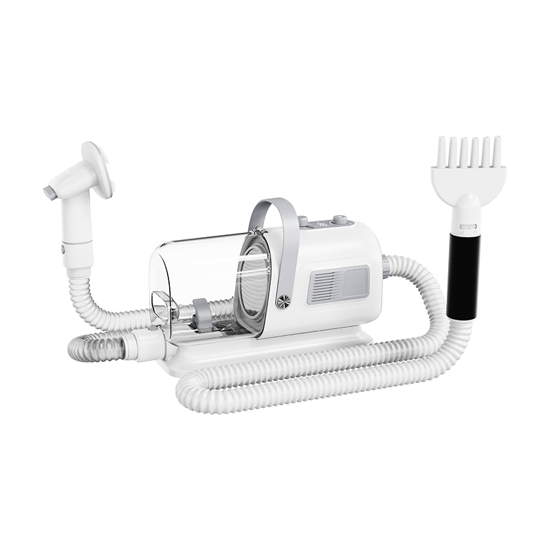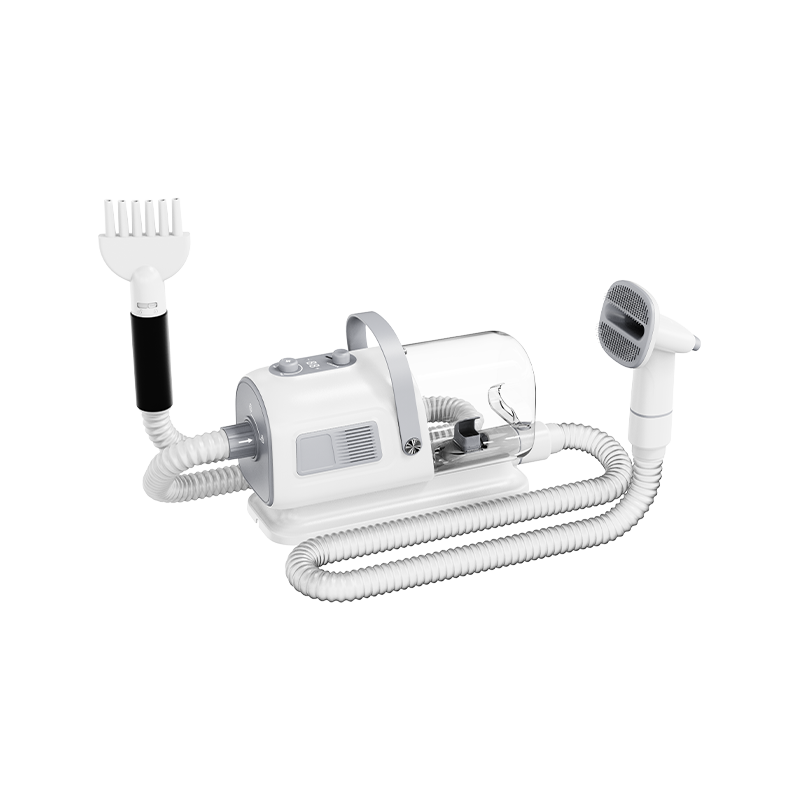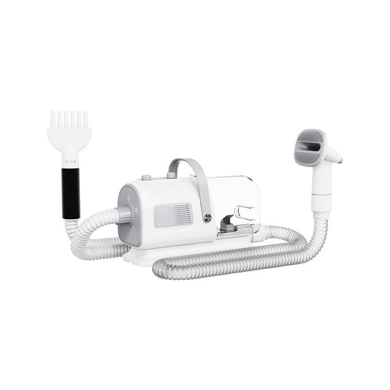 Kjæledyrhårstøvsuger og alt-i-ett-maskinen er en allsidig kjæledyrpleieenhet som kombinerer hårstøvsuging, blåsing, trimming og gre funksjoner i ett, designet spesielt for kjæledyreiere. Det forbedrer effektiviteten og komforten til hårpleie betydelig. Denne multifunksjonelle enheten støvsuger ikke bare raskt opp kjæledyrhår, men lar deg også føne pelsen ved å justere vindhastigheten.