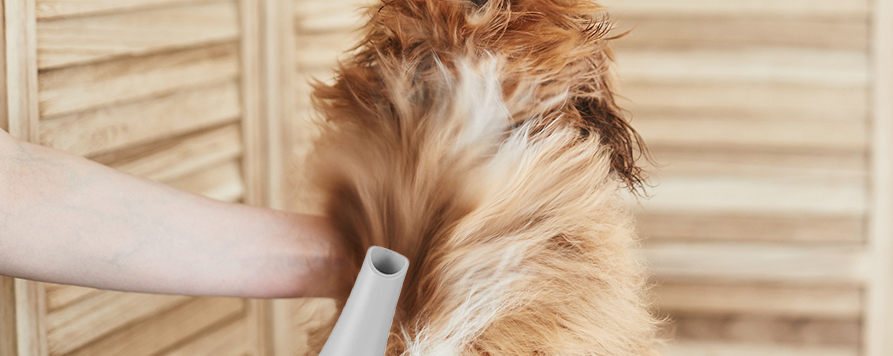 Børst og blås mot pelsens retning for å lufte håret, fjerne løs pels, gjøre pelsen myk og forenkle stylingen.
